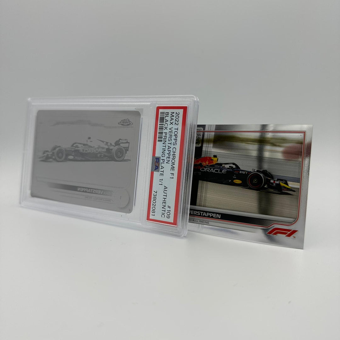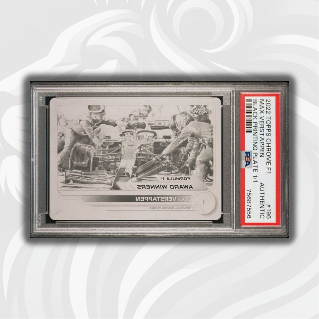 Arguably one of the best looking cards that Topps has ever produced within F1. It has a royal flair to it. It shows the 7-time world champion as king of its sport, elevated way above any other driver. The unique purple helmet is synonymous for the unforgettable Hamilton era. This is the original Topps prototype (with COA). Strangely enough, the actual 1/1 never surfaced nor did any other Hamilton gold plate of that series.... It only adds to the mystery and magic of "the helmet card".