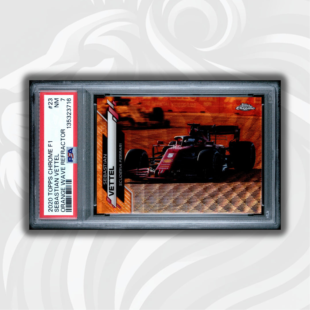 PSA 7 - 18/25 Sebastian Vettel #23 - Orange Wave Refractor - 2020 Topps Chrome F1