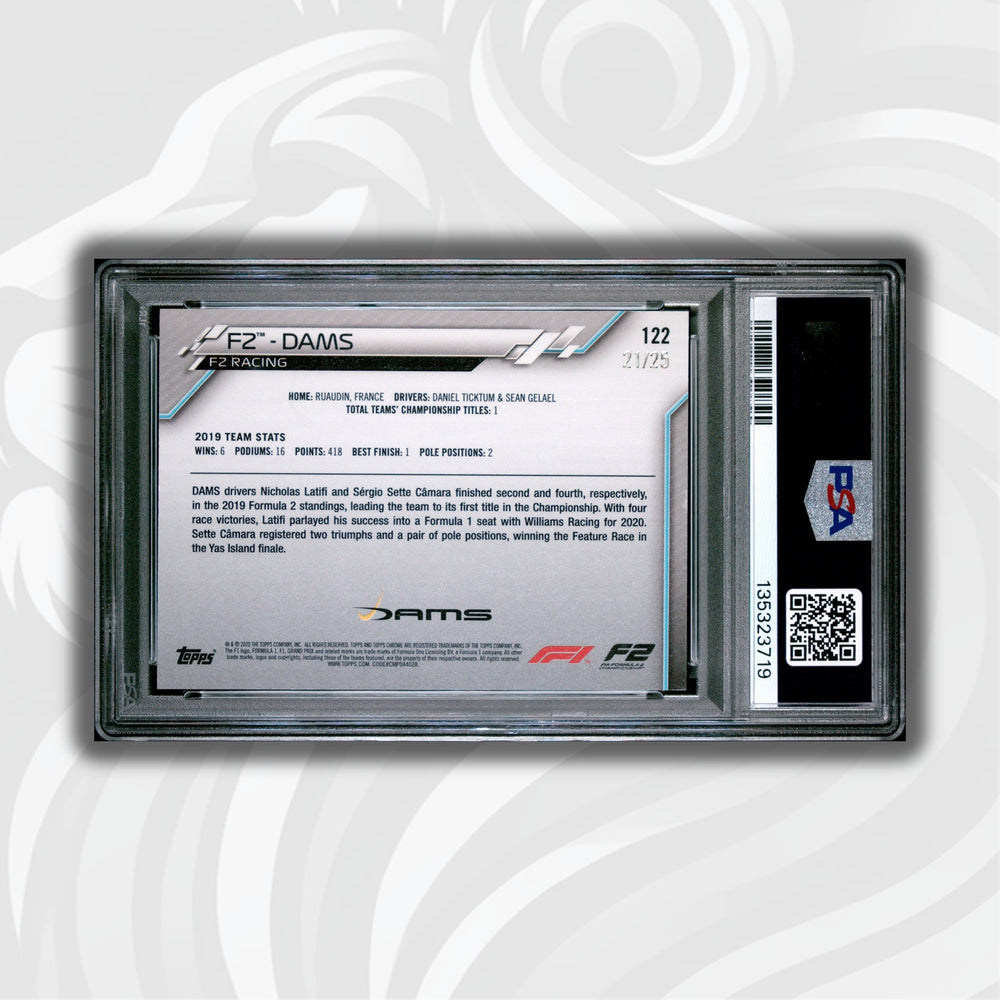 PSA 7 - 21/25 DAMS #122 - F2 Racing - Orange Wave Refractor - 2020 Topps Chrome F1