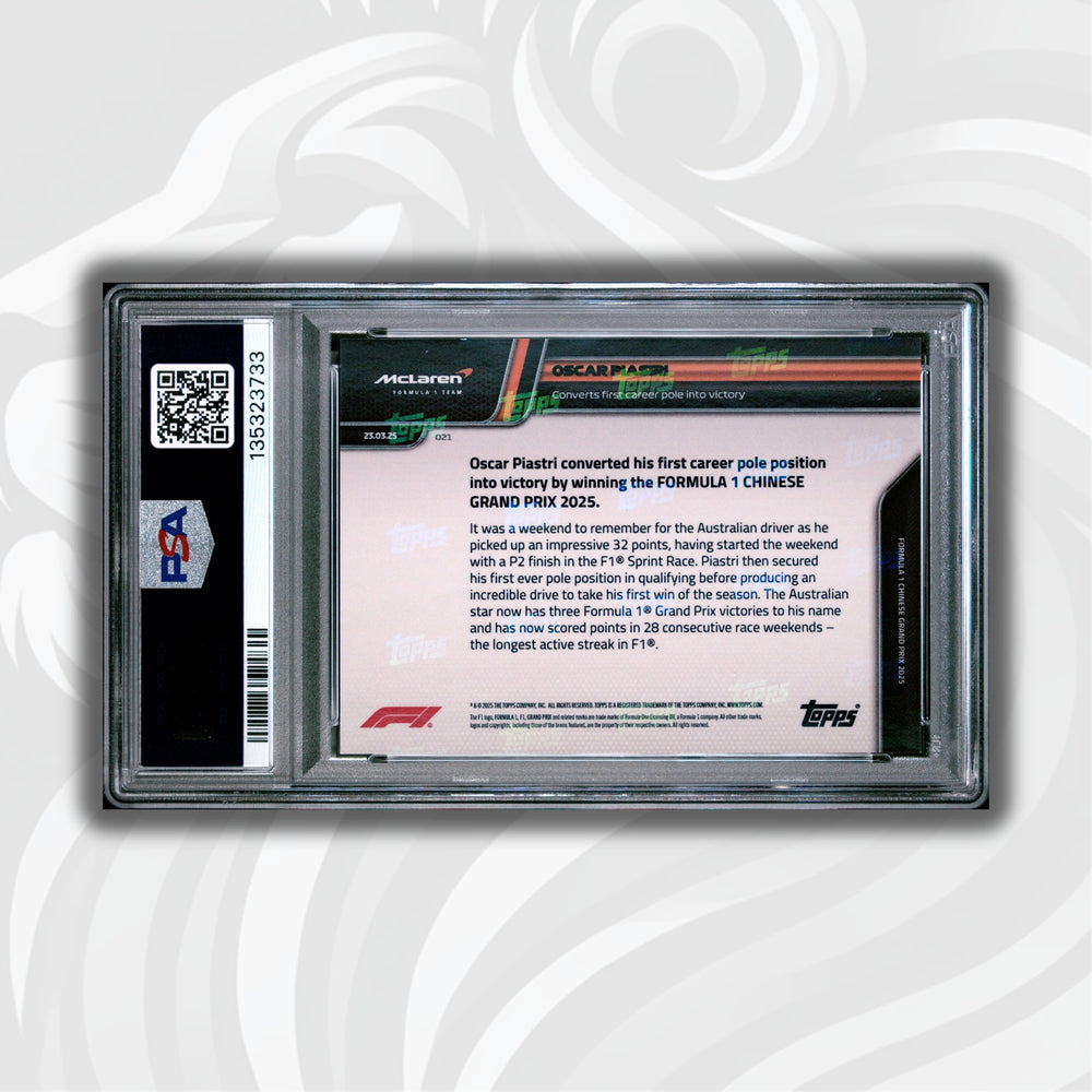 PSA 9 - 08/25 Oscar Piastri #21 - First Career Pole to Victory - Orange - 2025 Topps Now F1