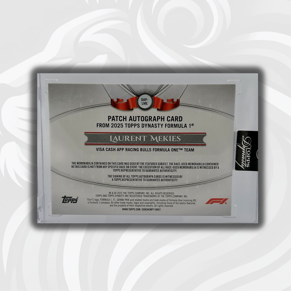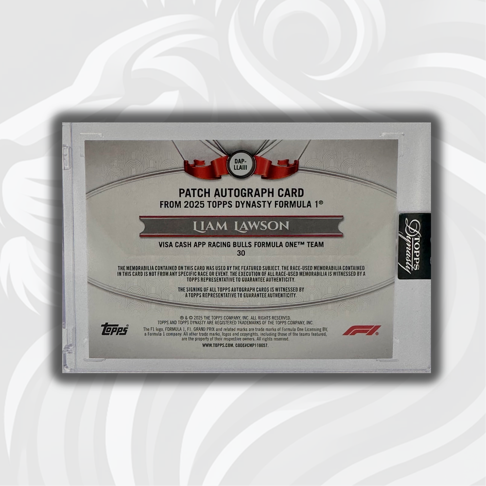 3/5 Red - Liam lawson #DAP-LLAIII - Patch Autograph - 2025 Topps Dynasty F1