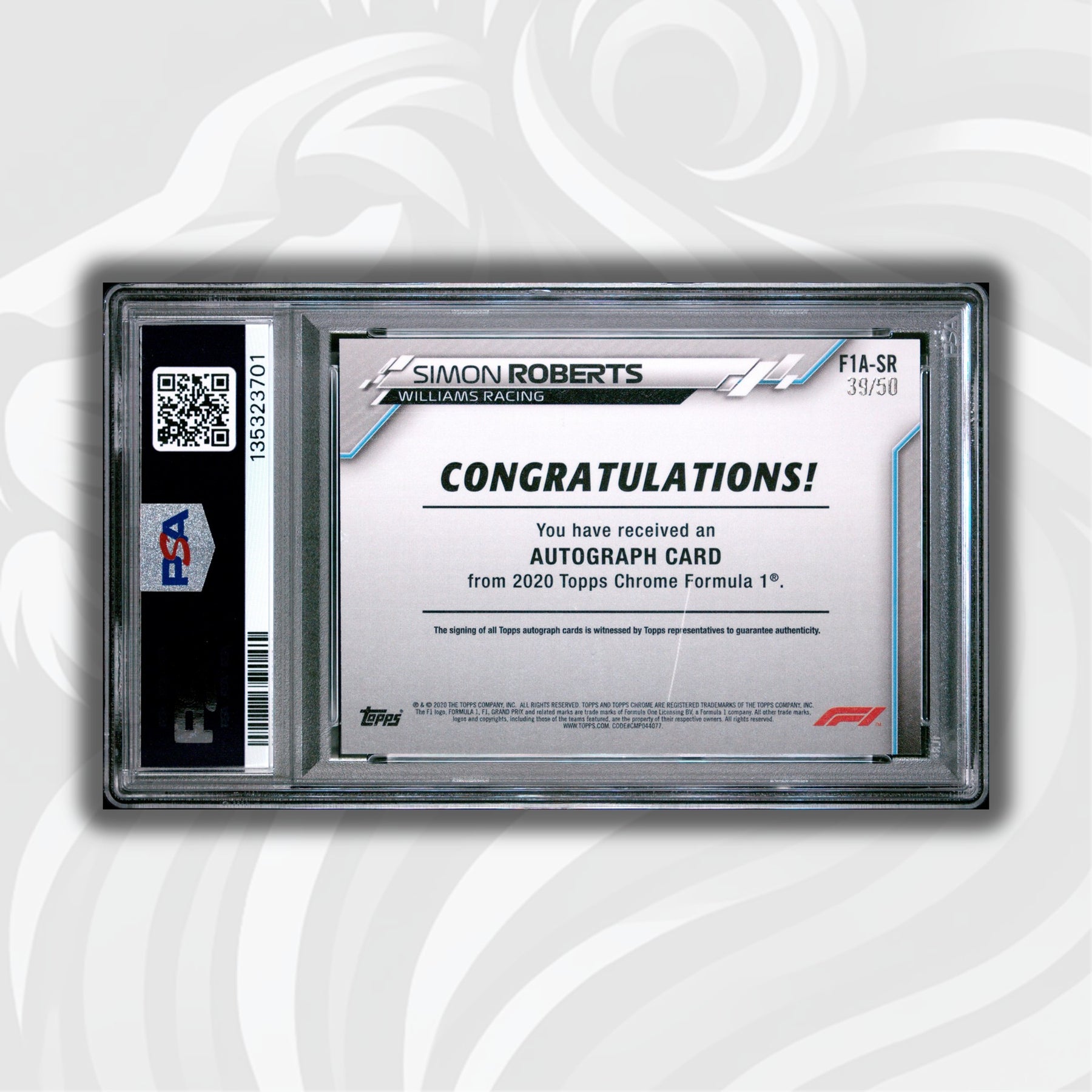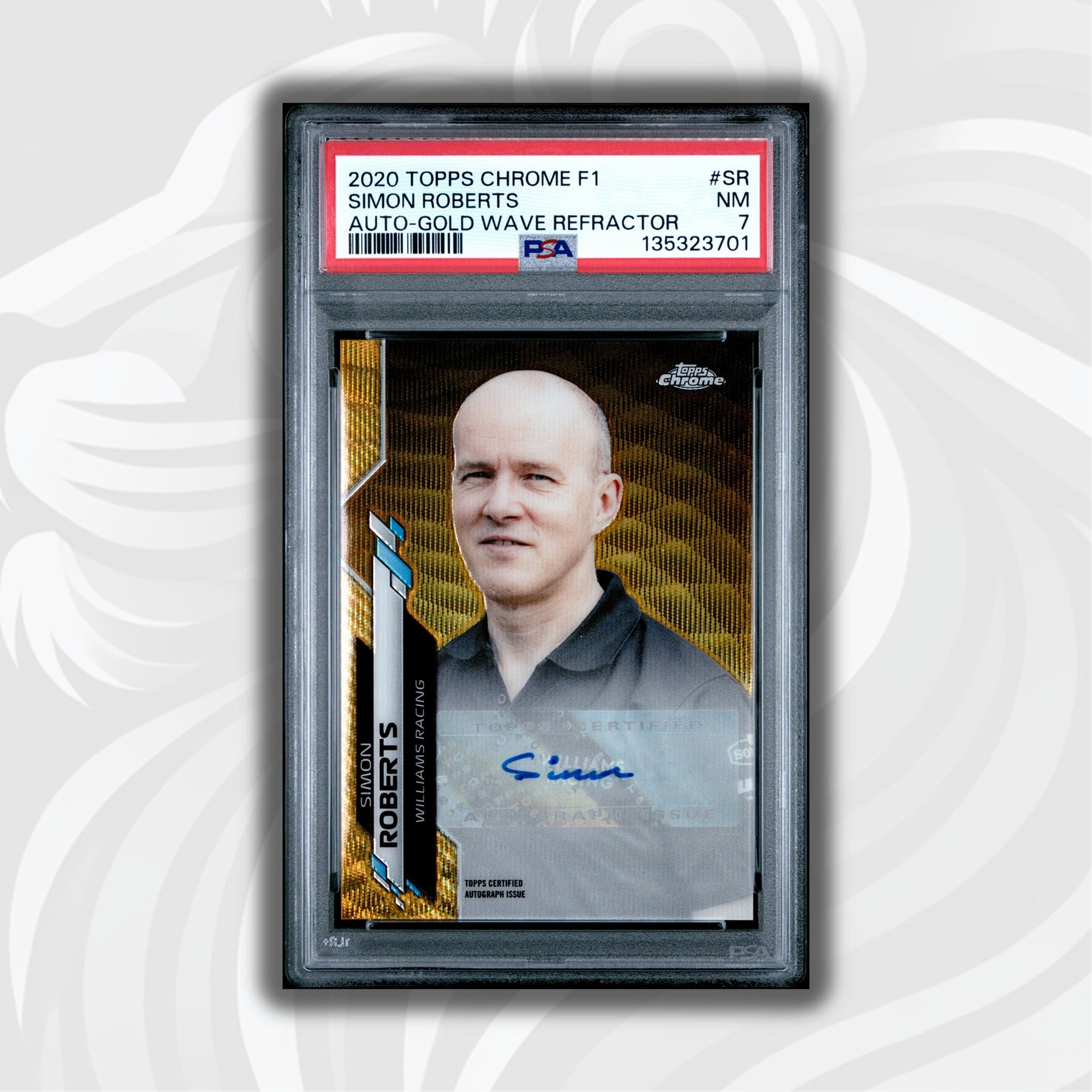 PSA 7 - 39/50 Simon Roberts #SR - Gold Wave Refractor Autograph - 2020 Topps Chrome F1