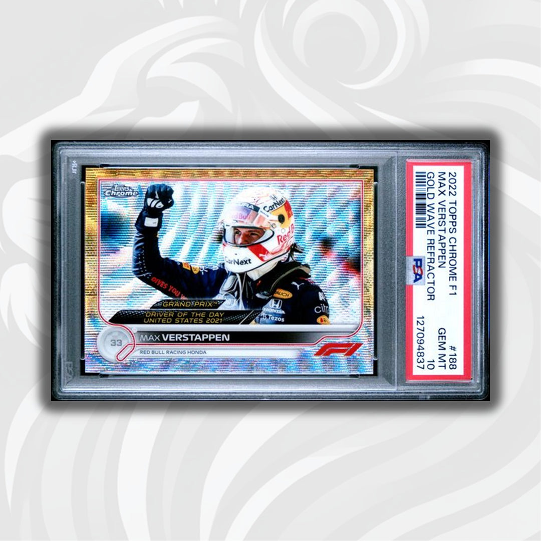 PSA 10 - 24/50 Max Verstappen #188 - Driver of the Day - Gold Wave - 2022 Topps Chrome F1