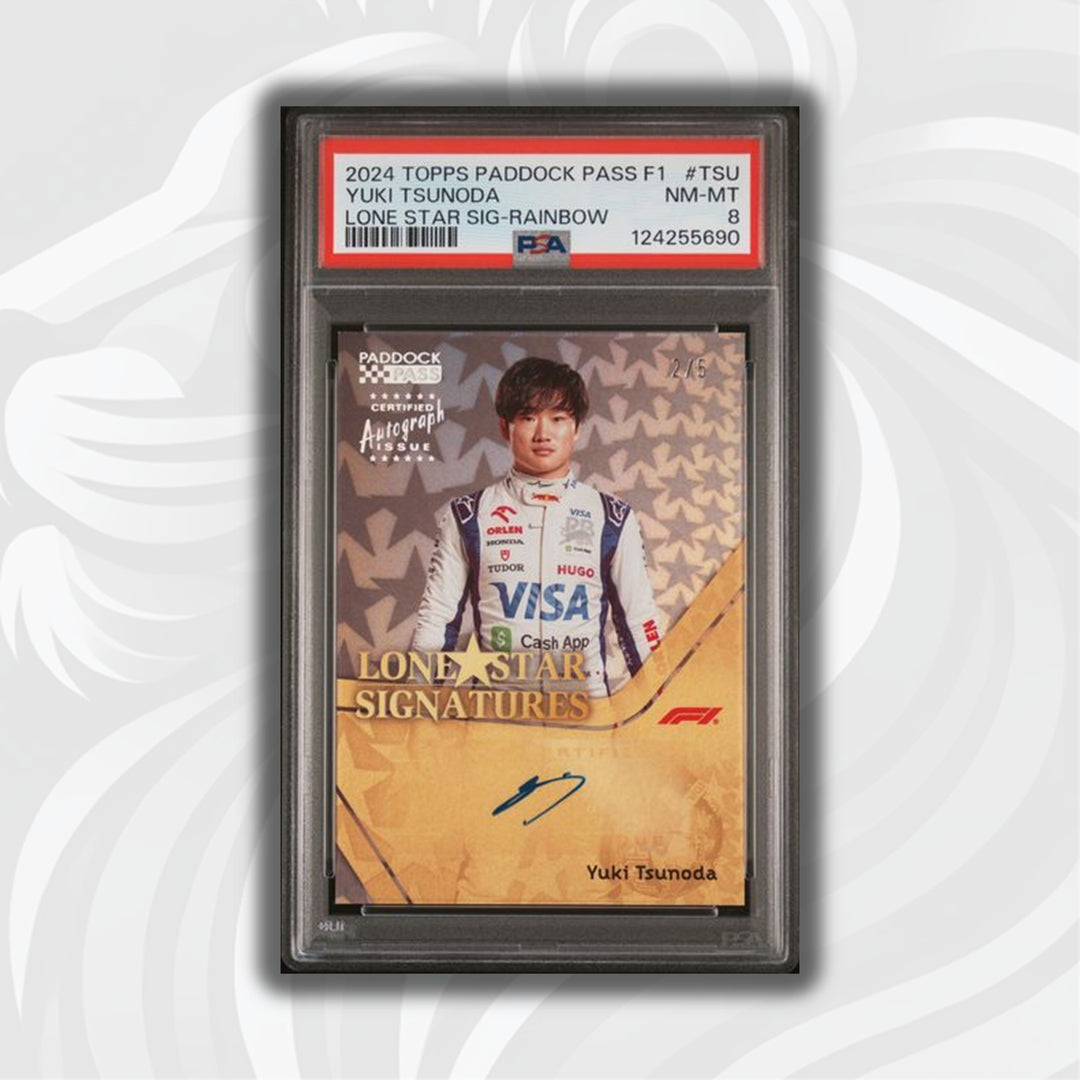 PSA 8 - 2/5 Yuki Tsunoda #LS-TSU - Lone Star Signatures - 2024 Topps Paddock Pass F1 - Rainbow