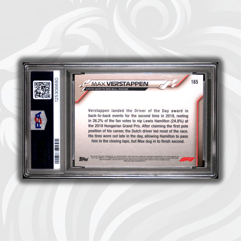 PSA 9 - Max Verstappen #165 - 2020 Topps Chrome F1 Sapphire Edition - Grand Prix - Driver of the Day Hungary