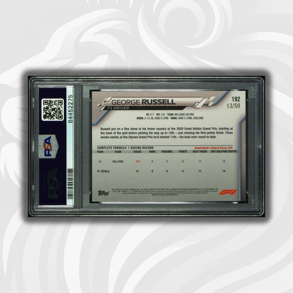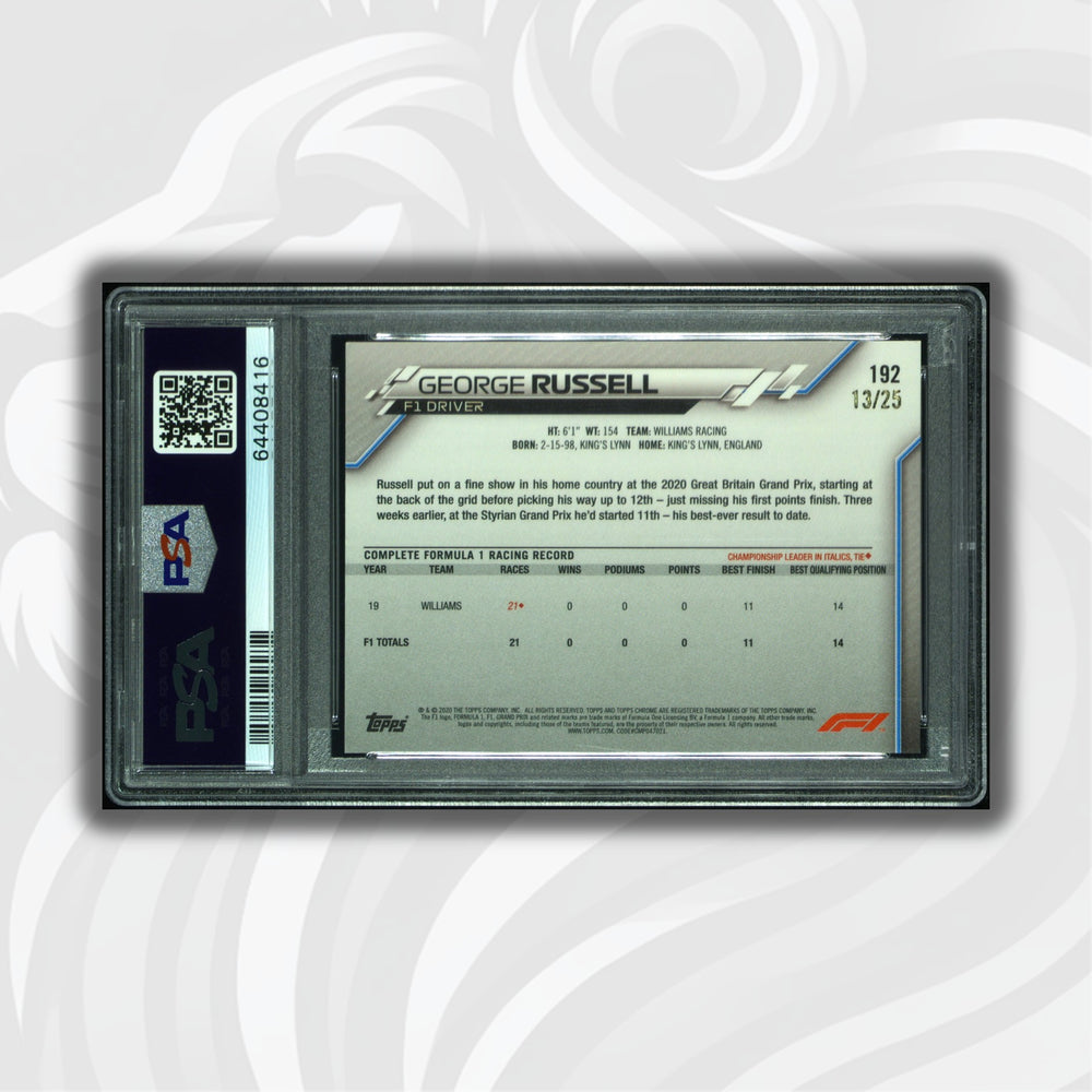 PSA 8.5 RC - 13/25 George Russell #192 - Sapphire - Orange - 2020 Chrome F1