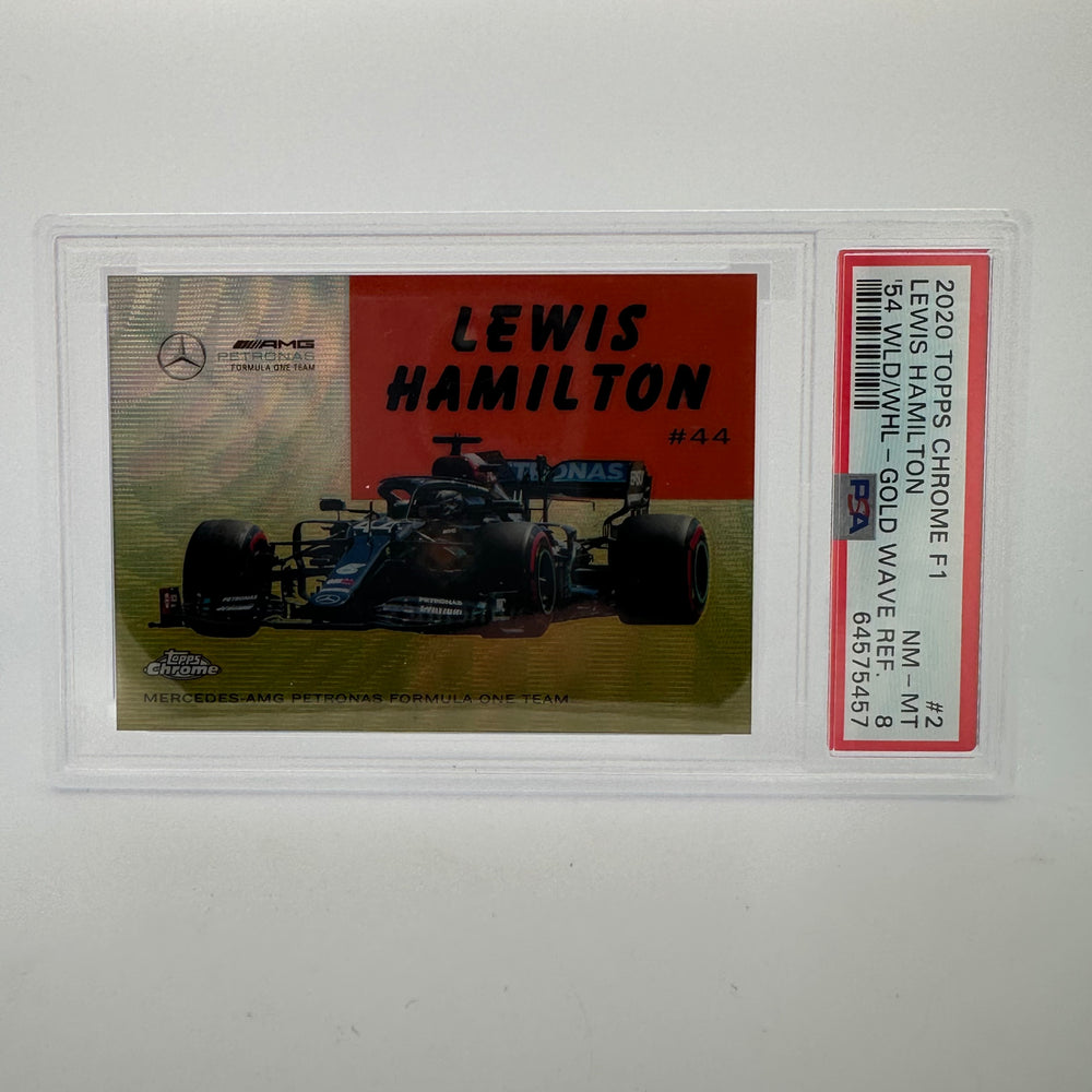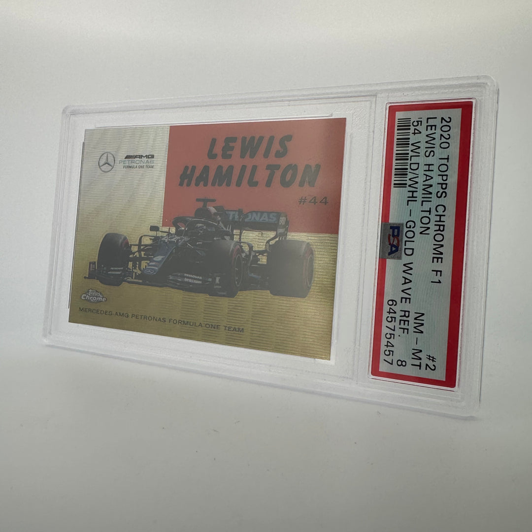 PSA 8 - 37/50 Lewis Hamilton - World On Wheels #54W-2 - Gold Wave Refractor