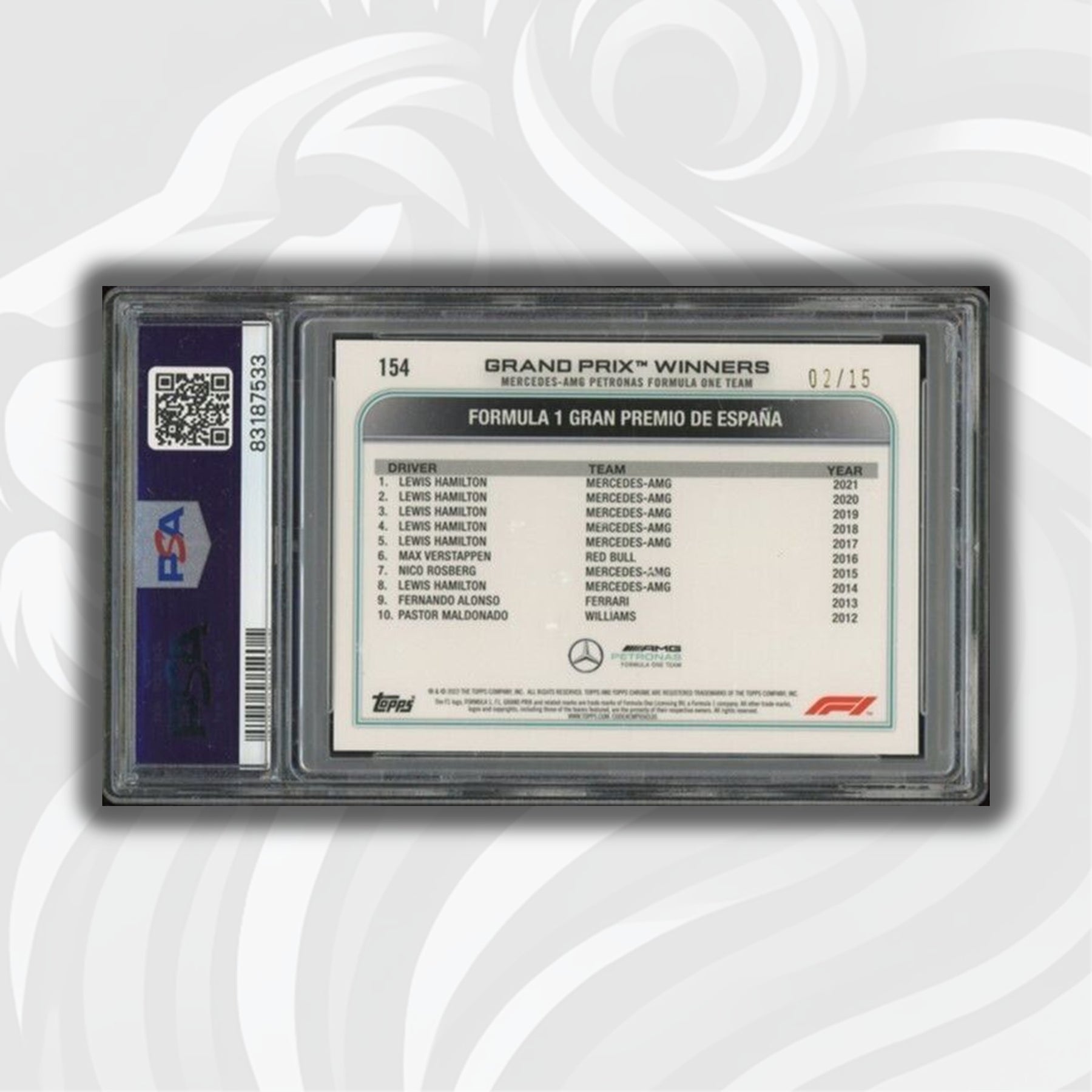 PSA 8 - 02/15 Lewis Hamilton #154 - Black And White - 2022 Topps Chrome F1
