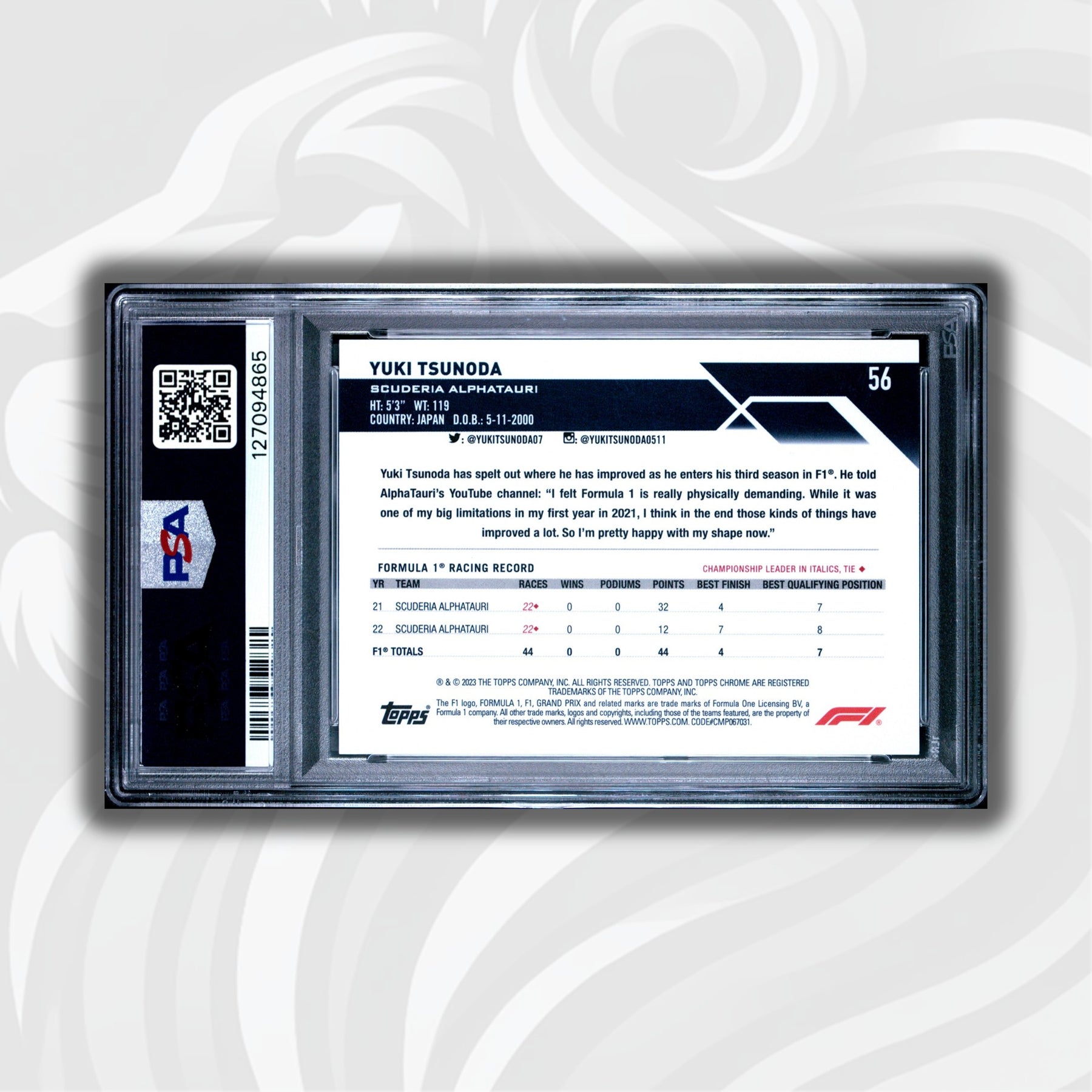PSA 10 - 3/10 Purple - Yuki Tsunoda #56 - 2023 Topps Chrome Sapphire