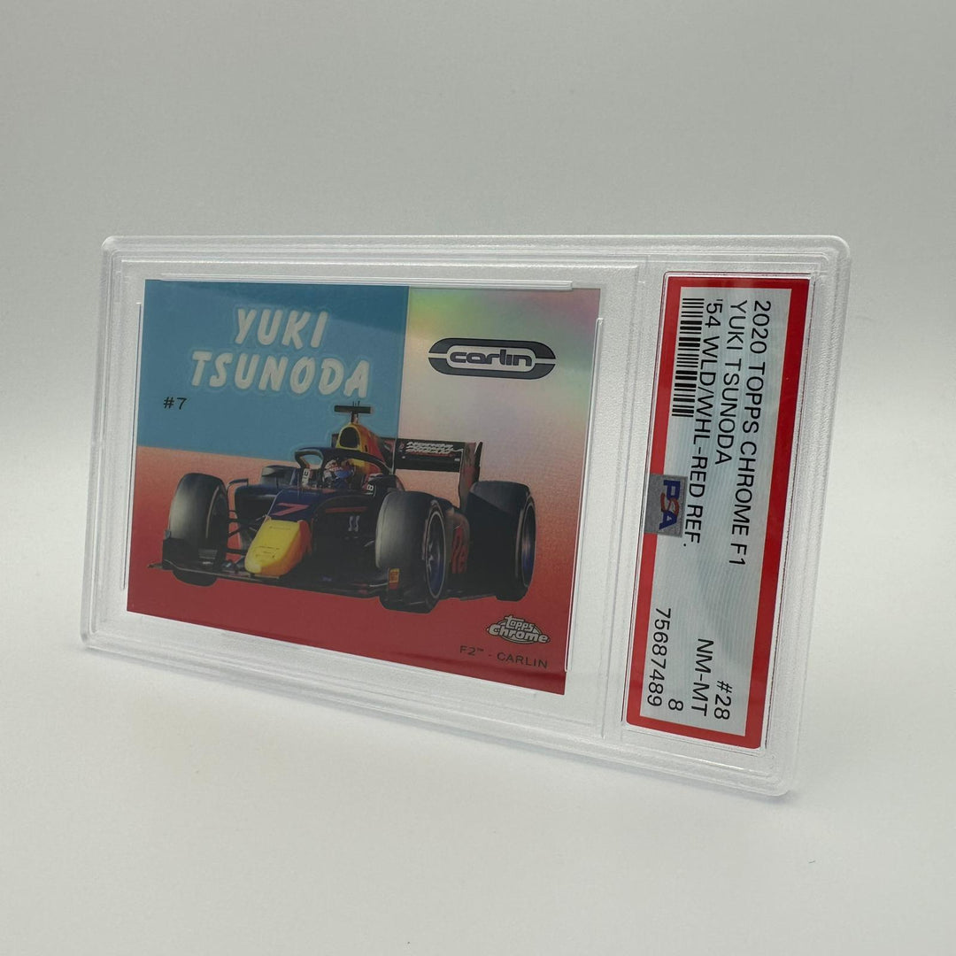 PSA 8 - 3/5 - Yuki Tsunoda - F2 Driver #54W-28 - Red Refractor