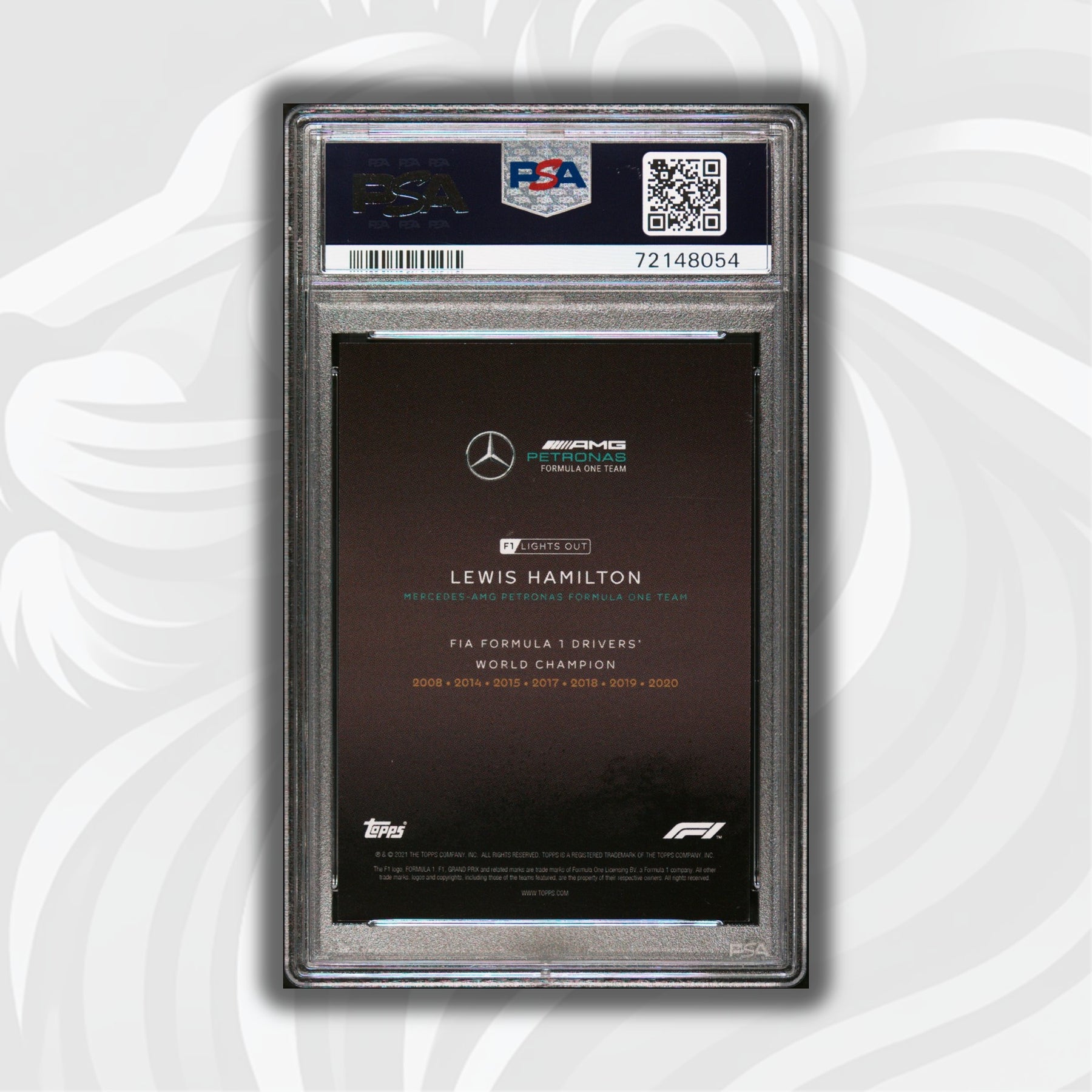 This card is part of the very first Topps Formula 1 Lights Out series that consists of a collection of 40 cards only. It sold exclusively online at the end of the historic and controversial 2021 season.