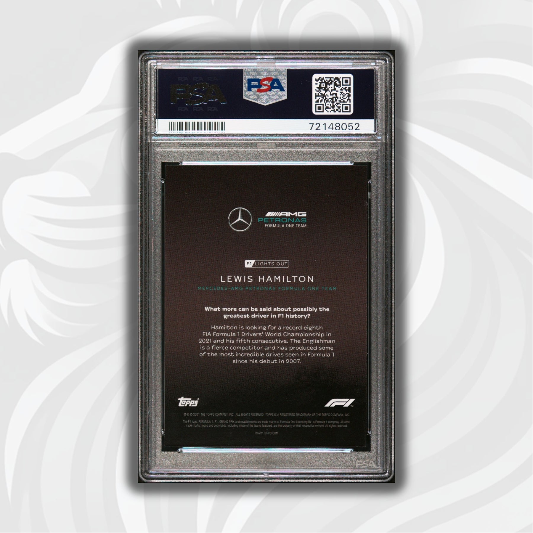 This card is part of the very first Topps Formula 1 Lights Out series that consists of a collection of 40 cards only. It sold exclusively online at the end of the historic and controversial 2021 season.