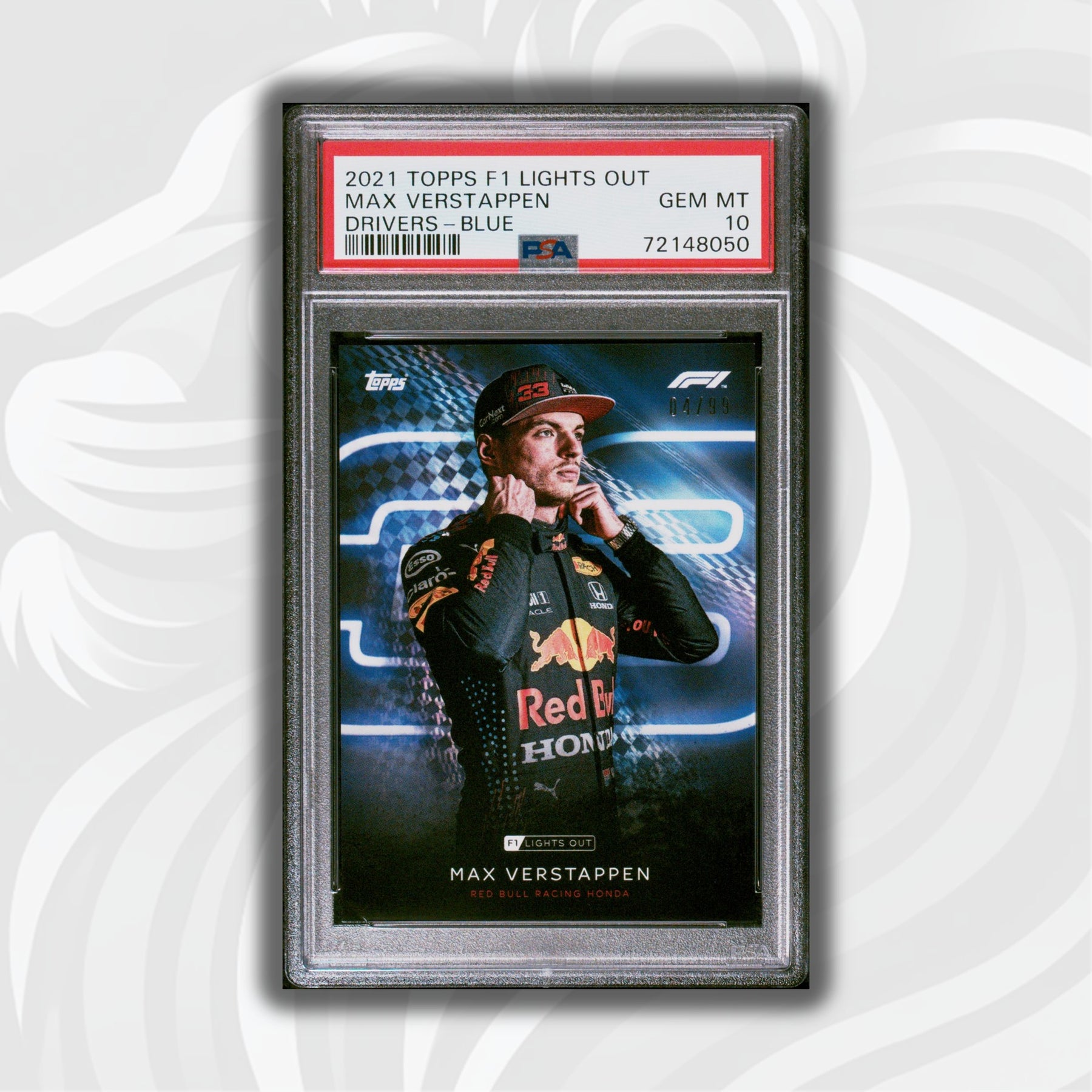 This card is part of the very first Topps Formula 1 Lights Out series that consists of a collection of 40 cards only. It sold exclusively online at the end of the historic and controversial 2021 season.