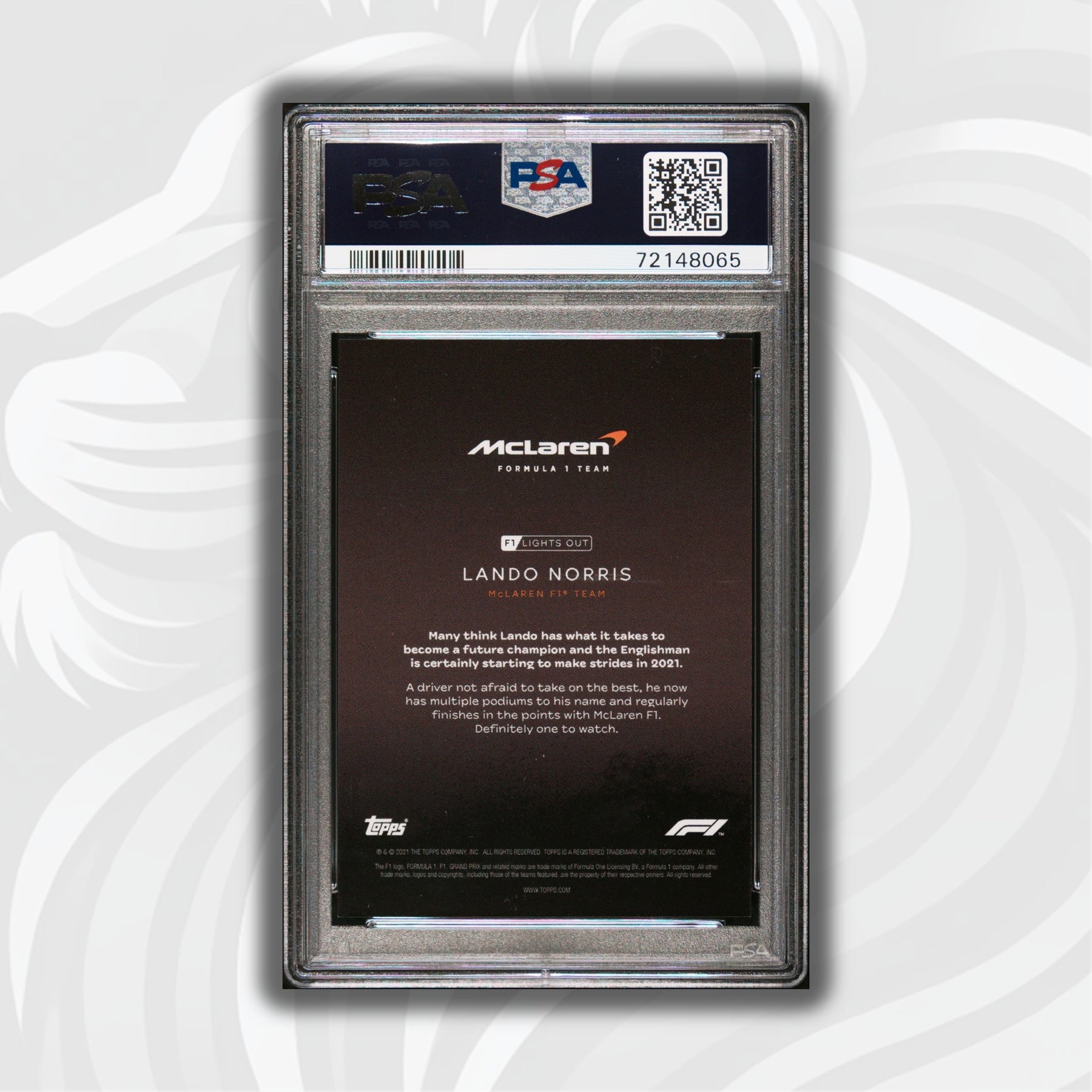 This card is part of the very first Topps Formula 1 Lights Out series that consists of a collection of 40 cards only. It sold exclusively online at the end of the historic and controversial 2021 season.