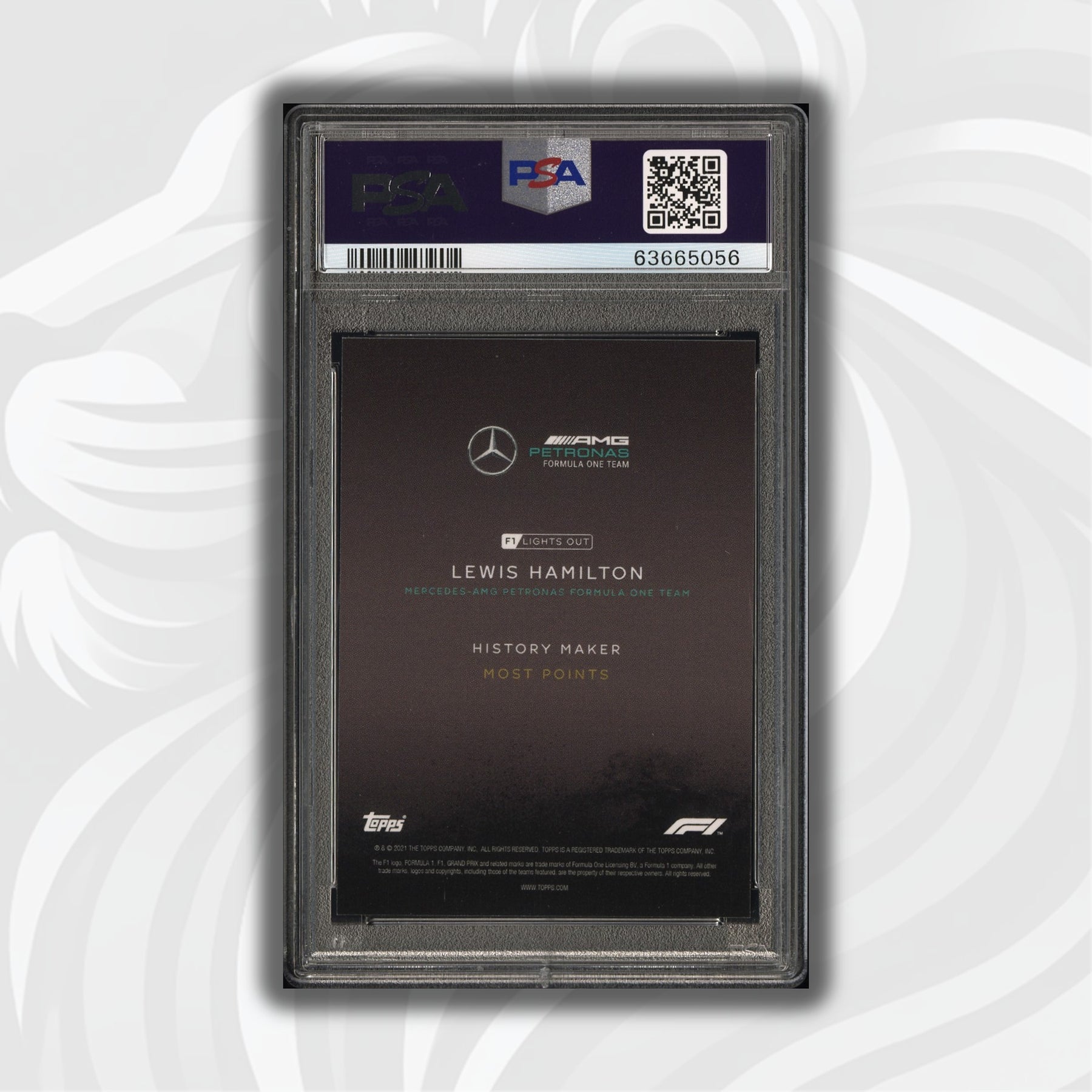This card is part of the very first Topps Formula 1 Lights Out series that consists of a collection of 40 cards only. It sold exclusively online at the end of the historic and controversial 2021 season.