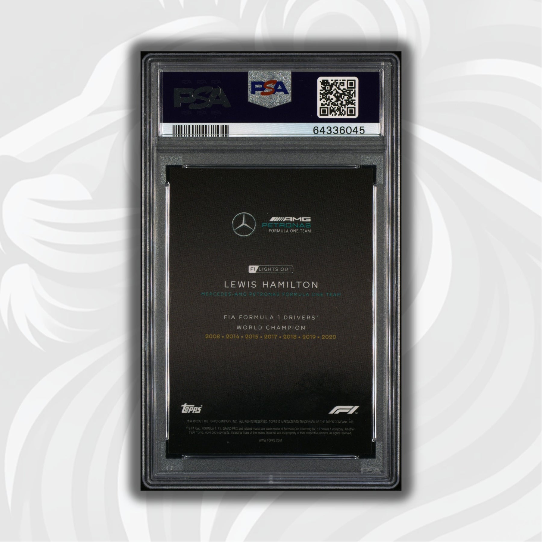 This card is part of the very first Topps Formula 1 Lights Out series that consists of a collection of 40 cards only. It sold exclusively online at the end of the historic and controversial 2021 season.
