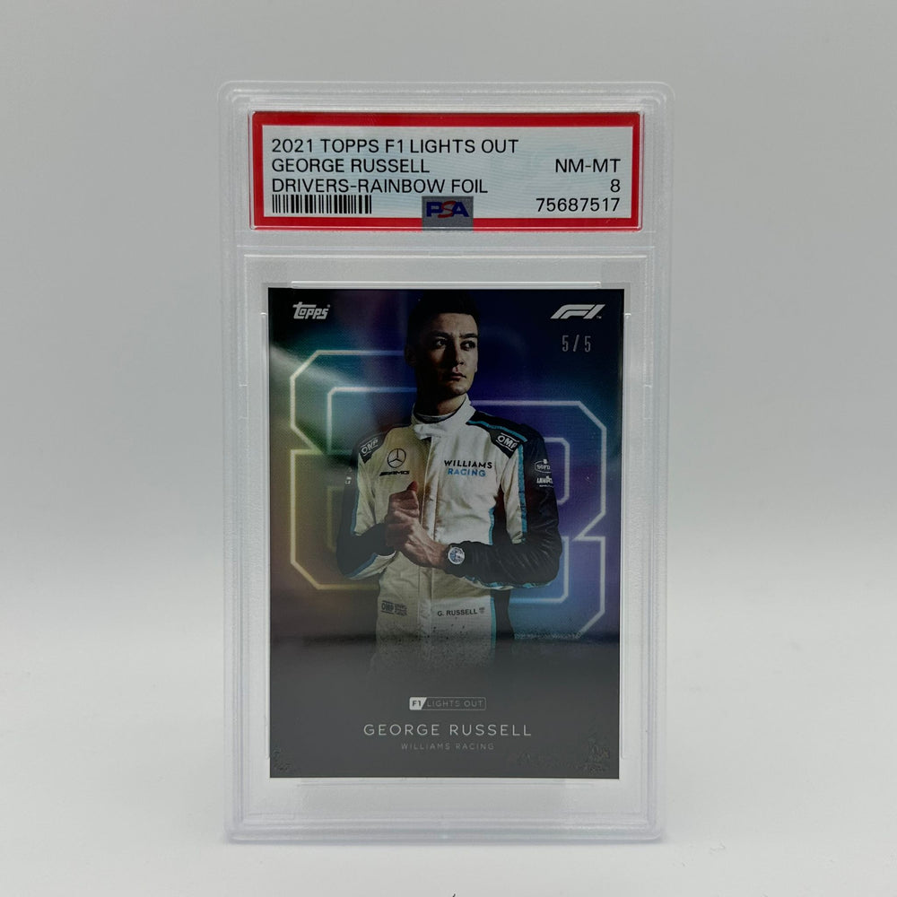 PSA 8 - 5/5 George Russell - Driver - Rainbow Foil
