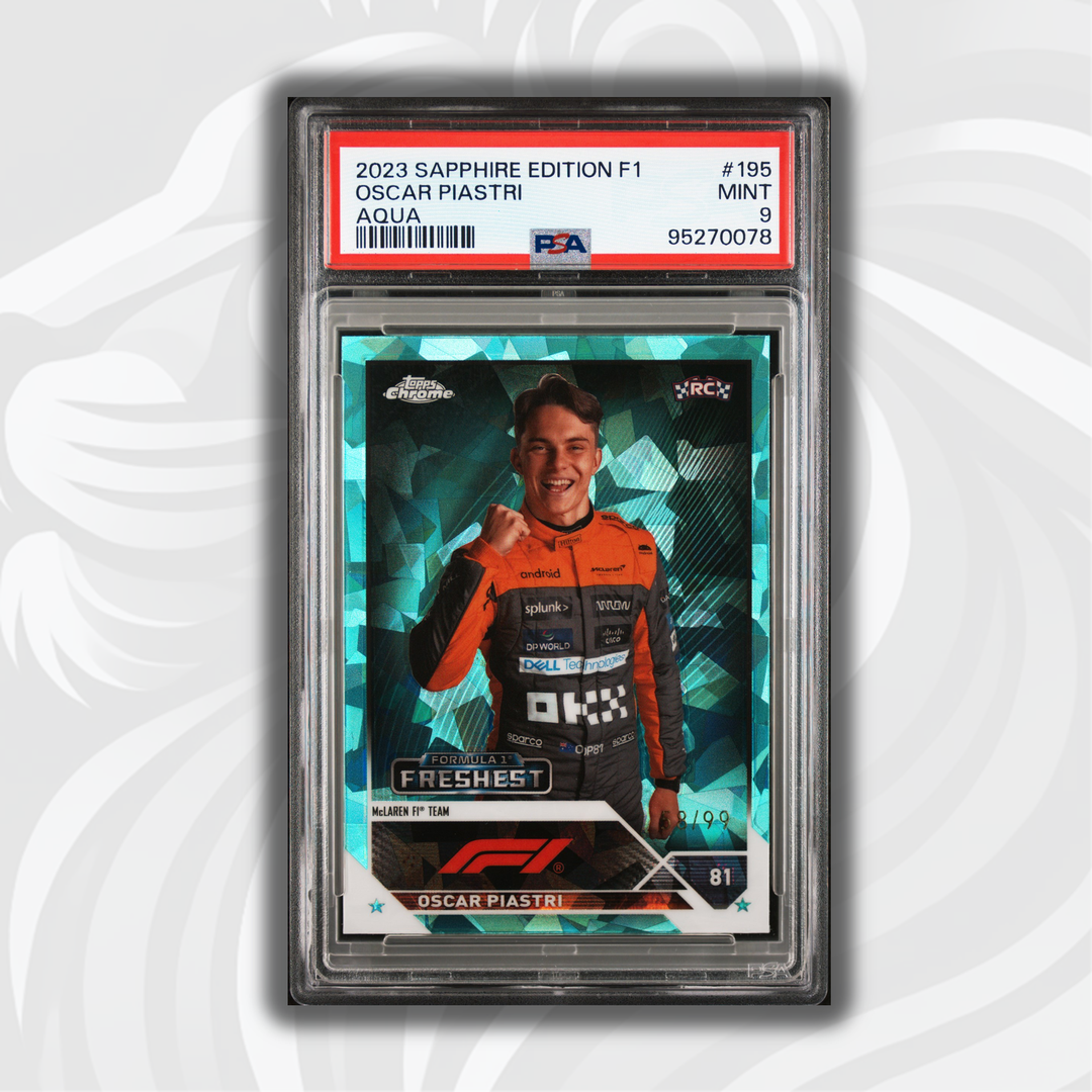 PSA 9 - 58/99 Oscar Piastri #195 - Aqua - Sapphire Edition - 2023 Topps Chrome F1 - Rookie Card