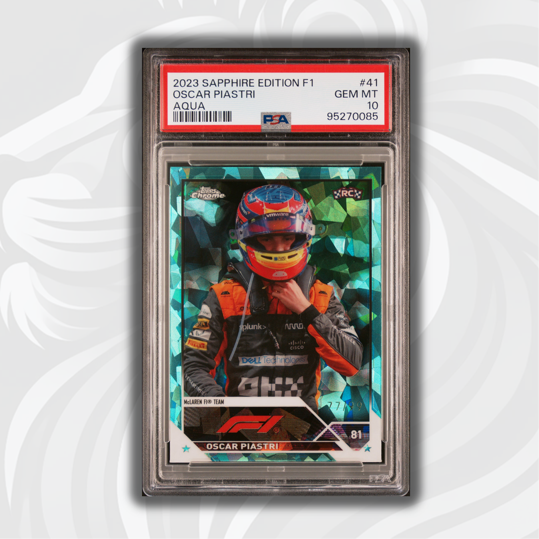 PSA 10 - 77/99 Oscar Piastri #41 - Aqua - Sapphire Edition - 2023 Topps Chrome F1 - Rookie Card