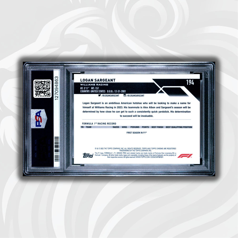 PSA 10 - 03/10 Purple - Logan Sargeant #194 - 2023 Topps Chrome Sapphire