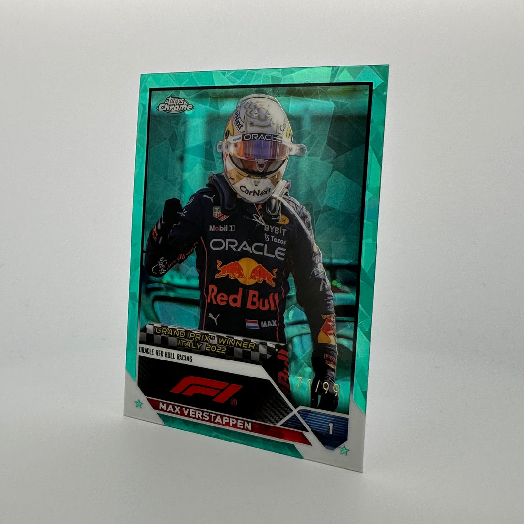 71/99 Aqua - Max Verstappen #159 - 2023 Topps Chrome Sapphire