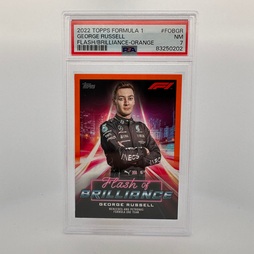 PSA 7 - 5/25 - George Russell #FOBGR - Flash Of Brilliance - Orange