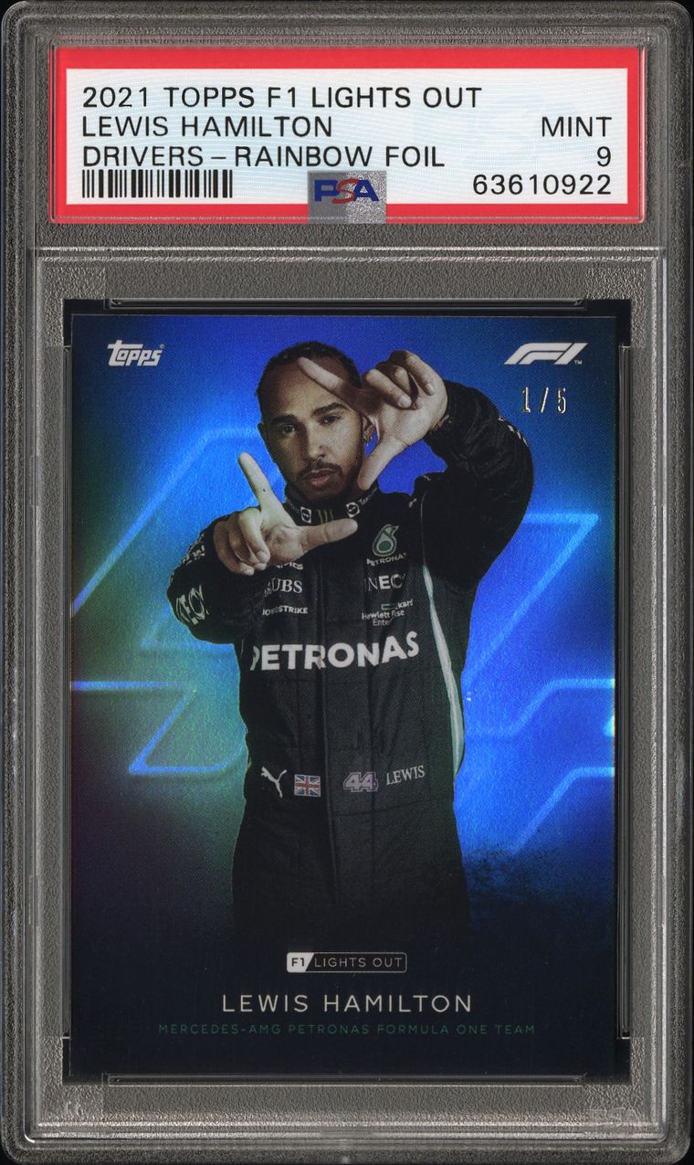 PSA 9 - 1/5 Lewis Hamilton - Driver - Rainbow Foil