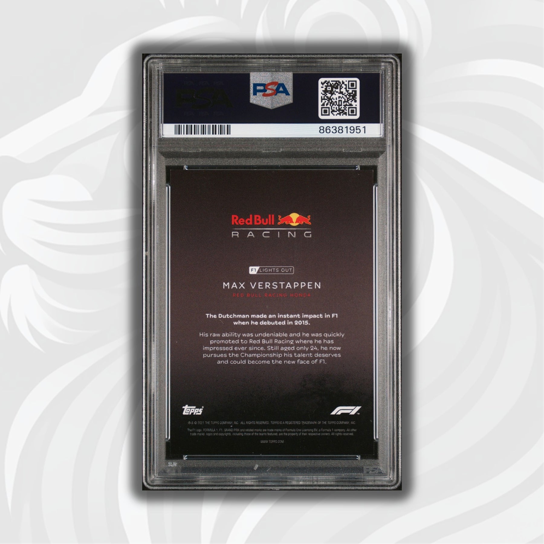 This card is part of the very first Topps Formula 1 Lights Out series that consists of a collection of 40 cards only. It sold exclusively online at the end of the historic and controversial 2021 season.