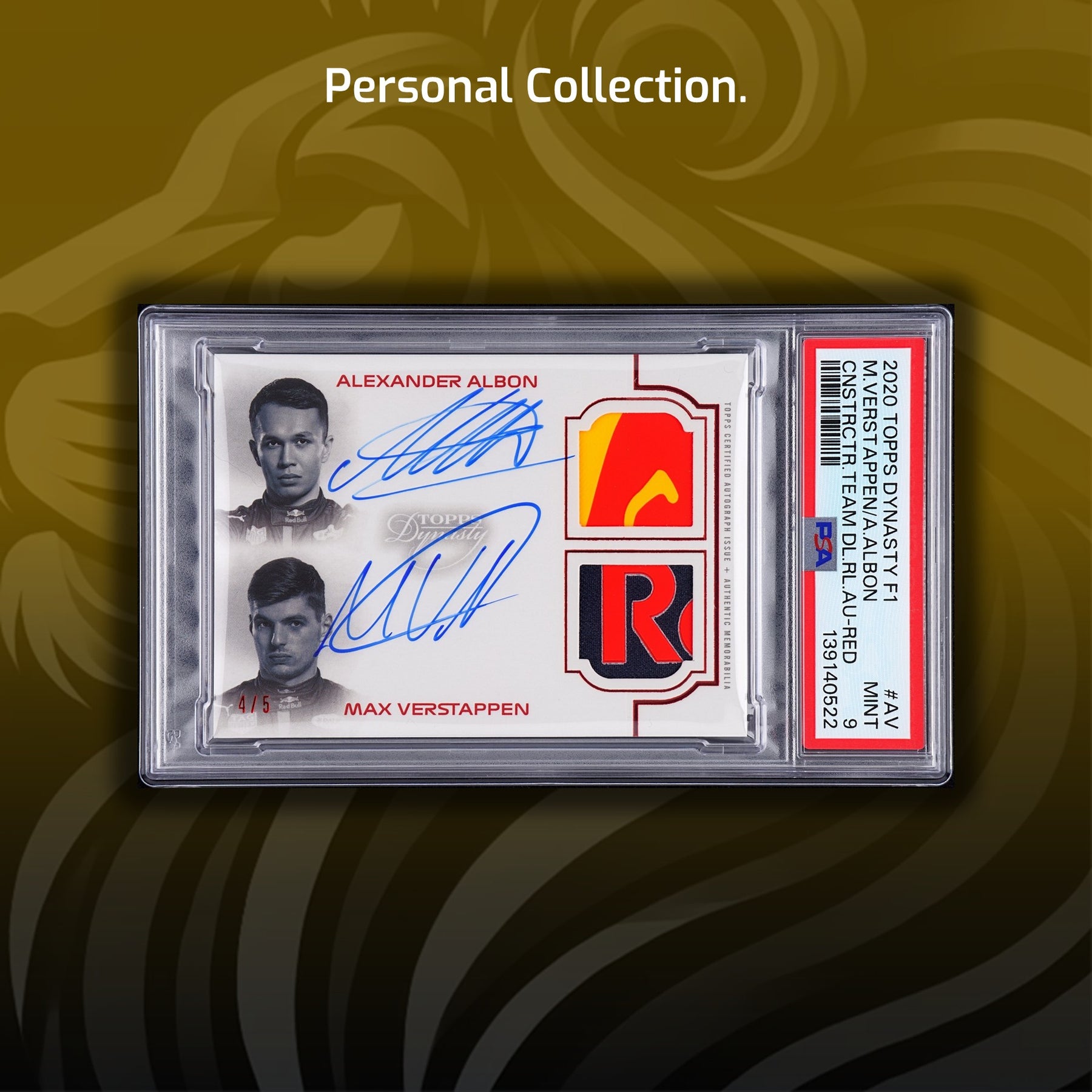 Investor alert! Only one image variation so only 10+5+1=16 2020 Topps Dynasty Team Max Verstappen cards exist! The debut set features one encased autograph numbered to 10 copies or less. 2020 Topps Dynasty Formula 1 Racing Autographs highlighting F1 drivers and team principals, the 2020 Topps Dynasty Formula 1 checklist is loaded with a variety of autograph relics. One crucial thing to note is that the product is not limited to only F1 drivers, but also features team principles. The Dynasty Autographed Patch (#/10) line features a large swatch for top names, plus Red (#/5) and Gold (1/1) parallels....