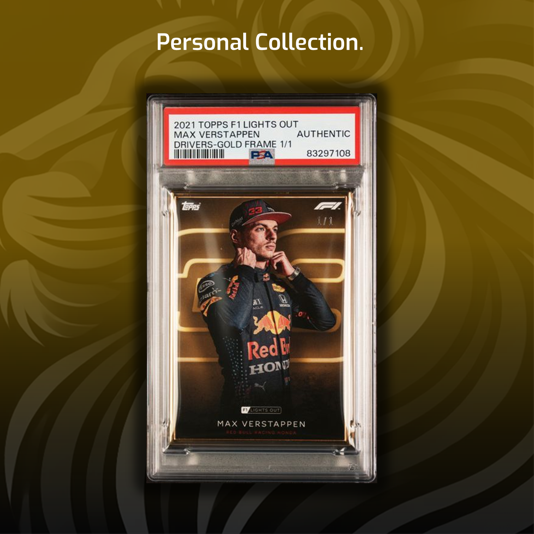 Max Verstappen, Aston Martin Red Bull Racing. The 2021 season marked a historic year for the Dutch driver, culminating in his first Formula 1 World Championship. This premium Lights Out insert celebrates that championship-winning season with an exclusive gold frame parallel.