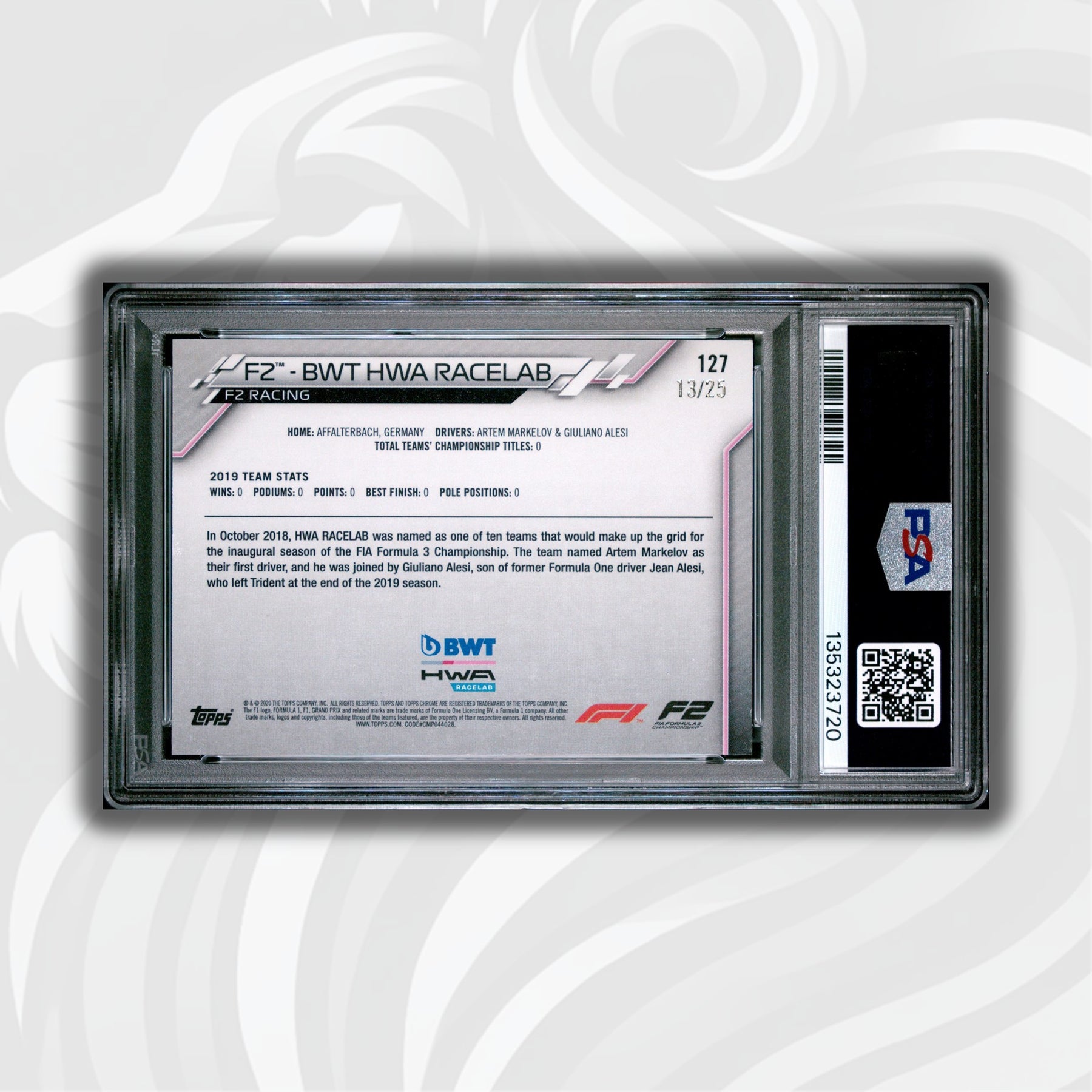 PSA 7 - 13/25 BWT HWA Racelab #127 - F2 Racing - Orange Refractor - 2020 Topps Chrome F1