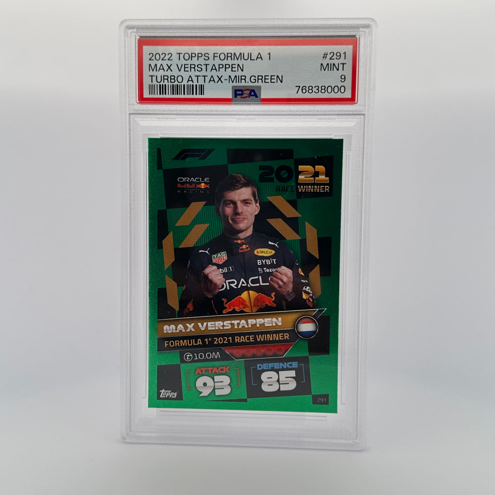 PSA 9 - 497/500 - Max Verstappen #132 - Stat Attax - Mirror Green