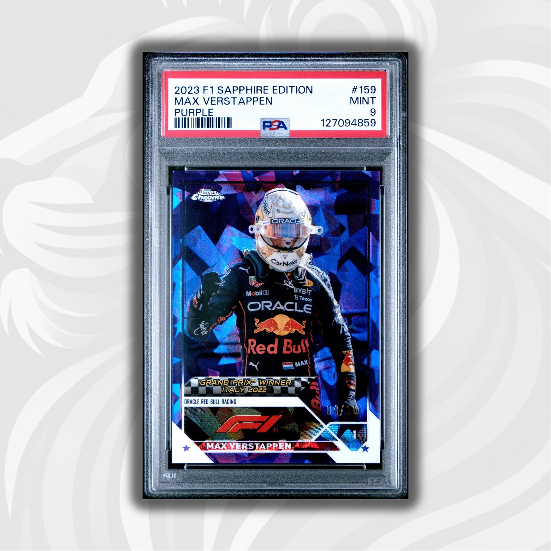 From lights out to the final lap, collect prestigious 2023 Topps Chrome Formula 1 cards showcasing the top young talents, superstars, and select legends from Formula 1® Racing!